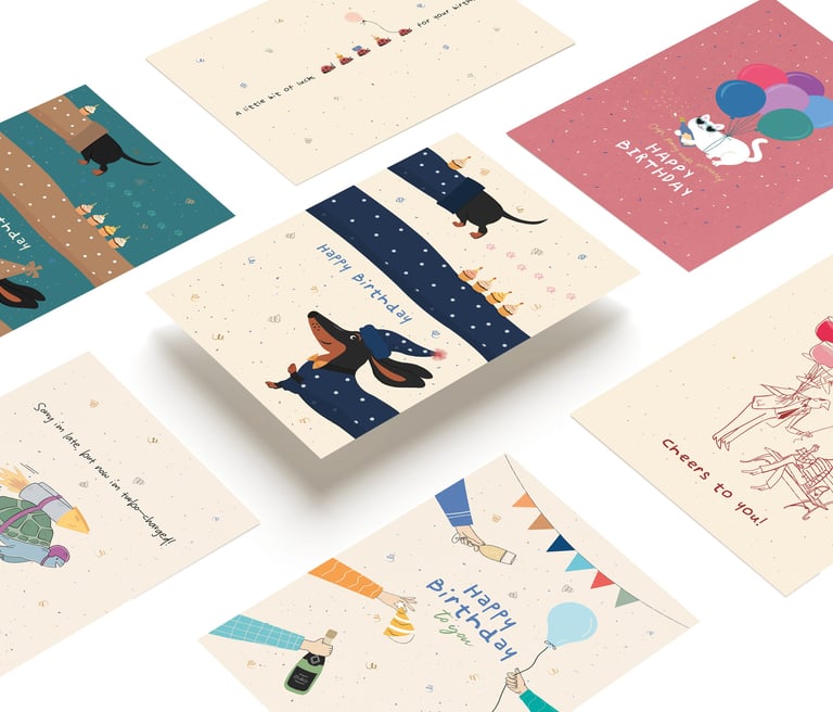 Die Kollektion umfasst eine Auswahl an Postkarten, die sich ideal für den Einsatz im Einzelhandel, in Cafés und Concept Stores eignet. Die Motive greifen alltägliche Situationen auf und verbinden Humor mit einem klaren, modernen Design. Durch den eigenständigen Stil fügen sich die Karten harmonisch in unterschiedliche Ladenkonzepte ein und schaffen gleichzeitig einen hohen Wiedererkennungswert.