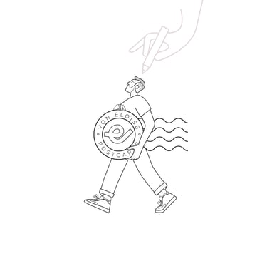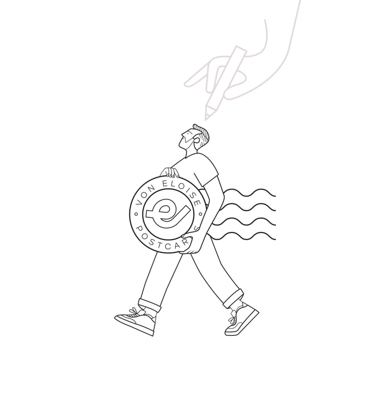 Handgezeichnete Postkarten mit klarem, verspieltem Stil für besondere Concept Stores.