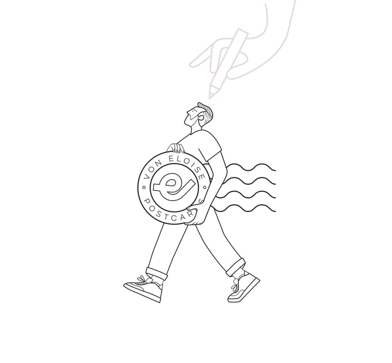 Elois gestaltet ruhige, verspielte Postkarten, die in ausgewählten Concept Stores und Geschenkshops ihren Platz finden.